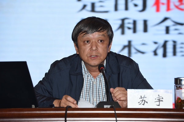 苏宇详细讲述了党章的历史沿革、解读了十八大新党章的具体要求,带领大家一起学习习近平总书记关于学习《党章》的重要论述,就如何争做遵规守纪合格党员为大家上了一堂生动的党课。苏宇通过生动的事例,翔实的资料,动情的解说,提醒大家牢固树立“四个意识”,要求全体党员干部以《党章》为镜,讲规矩、守纪律、讲奉献,在工作中做好表率,积极发挥模范带头作用。
