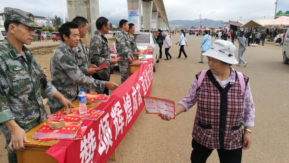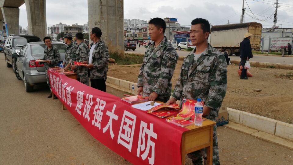 9月16日是第十七个全民国防教育日,按照昆明市呈贡区人民武装部相关精神和《马金铺街道综合办公室关于开展第十七个“全民国防教育日”活动的通知》要求,9月16日下午,马金铺街道人民武装部在化城集贸市场门口开展了“全民国防教育日”宣传活动。