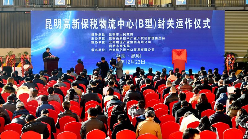 12月22日,昆明高新保税物流中心(B型)封关运作启动仪式在高新区举行。昆明高新保税物流中心(B型)的建成将成为昆明市扩大对内对外开放的重要平台和发展高地,在调结构、促转型、扩贸易、增就业和辐射带动周边地区发展中发挥重要作用。