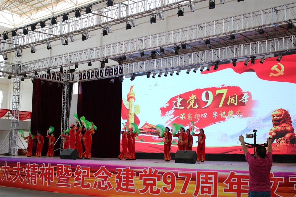 最后,在陈勇同志、苏宇同志的带领下,全体演出人员、观众齐声高唱《没有共产党 就没有新中国》,文艺汇演正式结束。