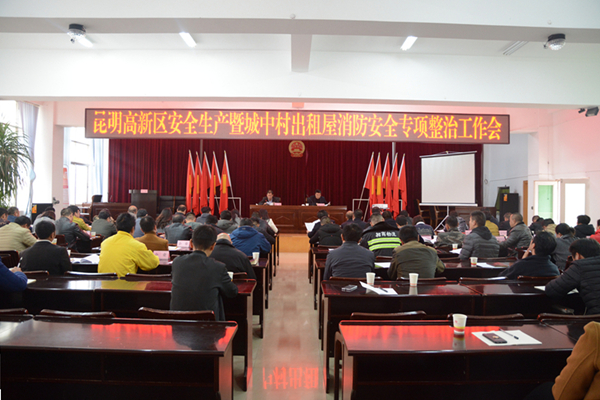 为认真贯彻落实市委、市政府关于全市安全生产暨城中村、出租屋消防安全专项整治动员部署电视电话会议要求,12月12日,昆明高新区召开安全生产暨城中村出租屋消防安全专项整治工作会。党工委副书记、管委会主任陈勇,党工委委员、管委会副主任陈全季出席会议,安监局、住建局、社会事业局、公安分局、综合执法大队、消防大队、马金铺街道办等部门及23个社区、驻区企业代表参加会议。