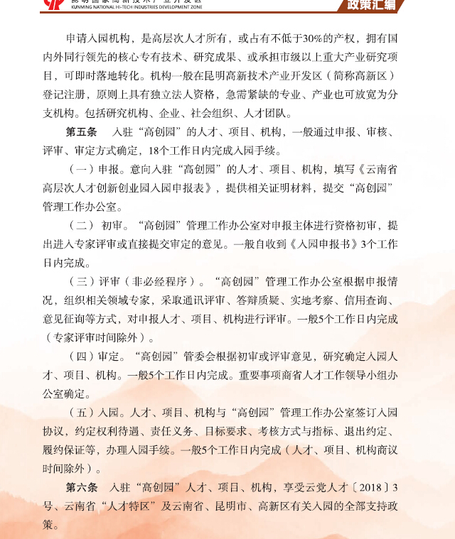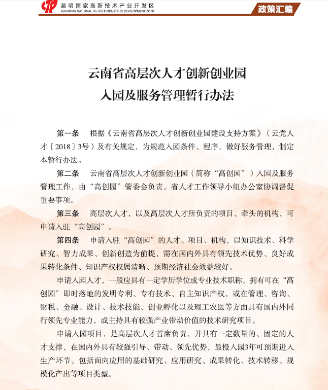 云南省高层次人才创新创业园入园及服务管理暂行办法