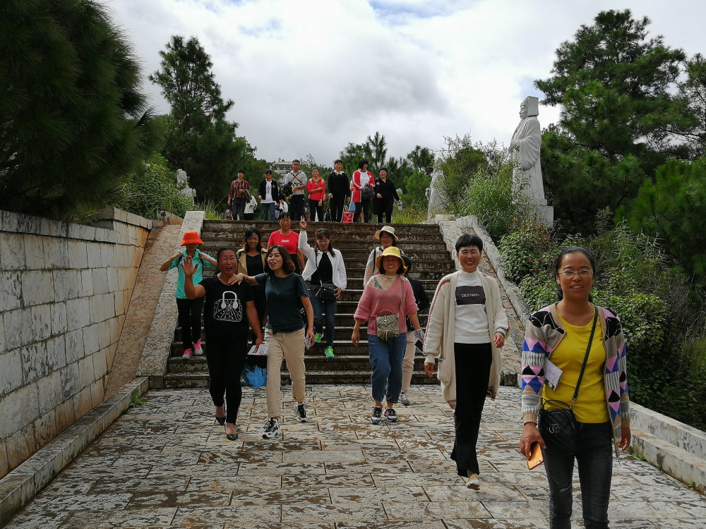 迎着朝霞,姐妹们踏上了登峰寻宝的健身之路。一路上,大家一边欣赏沿途风光,一边热烈交谈,欢声笑语不断。在登山的过程中,大家互相鼓励、互相帮助,通过曲曲的山路、层层叠叠的台阶,顺利地登上了韶山冲的最顶峰,不仅沿路寻到了夺宝号码牌,还远眺了碧波荡漾的滇池,马金铺产业基地新城的高楼、标准化厂房;近观了韶山冲郁郁葱葱的森林,繁花似锦的花海。