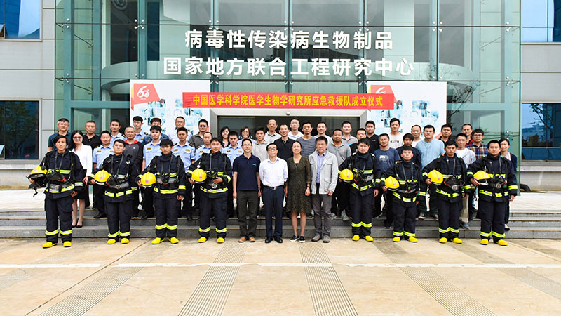 中国医学科学院医学生物学研究所立足于单位的长远发展,安全生产领导小组决定在原来救援队的基础上补充大量人员,队员覆盖了茭菱路、马金铺、花红洞和依禄村四个工作园区,来自于不同系统的66名应急队员,在工作之余学习消防知识和医疗急救知识,从理论、实操、培训到演练,形成一体化训练。为能在发生安全事故的第一时间,协同部门处理应急事故。