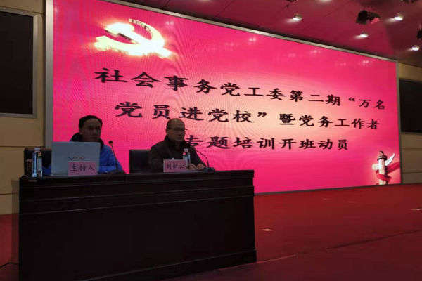 为深入学习贯彻党的十九大精神和习近平新时代中国特色社会主义思想,结合“不忘初心、牢记使命”主题教育和高新区党工委工作部署要求,2019年10日至12日,社会事务党工委在高新区国际会议厅组织开展了社会事务党工委第二期“万名党员进党校”暨党务工作者专题培训班。社会事务党工委班子,高新区西区10个社区、社会事业局党支部、马金铺卫生院党支部共计240名党员参加了培训。